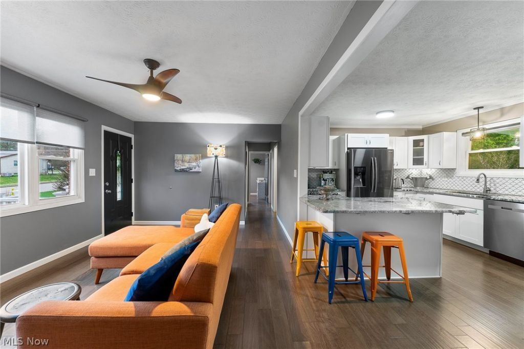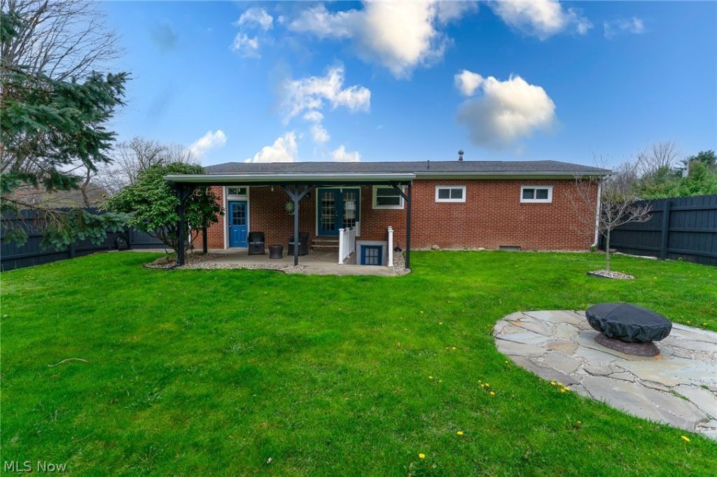 Bright, cheerful, and easy to love, this 3 bedroom, 2 full bathroom ranch offers the perfect blend of comfort and low maintenance living. With everything on one floor, daily life feels simple and stress free. The welcoming layout is filled with natural light and features laminate flooring throughout. The kitchen is both functional and stylish with granite countertops and large french doors that open to a covered patio, creating a seamless indoor outdoor flow. The fully finished walkout basement adds valuable living space with an additional living area, full bathroom, and laundry room, plus direct access to the back patio. Enjoy the large fenced in backyard complete with a fire pit, perfect for relaxing or entertaining. New lighting and ceiling fans have been installed throughout the home, adding a fresh and updated feel. Major updates include a new furnace and central air in 2025 and a professionally waterproofed basement. All appliances stay. Ample storage throughout. Move in ready and designed for easy living, this home offers comfort, convenience, and space to enjoy