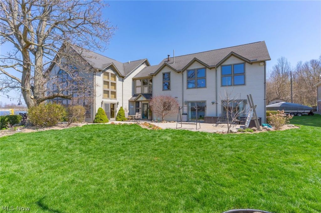 This rare custom built contemporary 5 bedroom, 5 bath lakefront property offers unmatched panoramic views of the lake from both levels delivering functionality and standout character. Showcased by soaring ceilings and a wall of windows giving a picturesque view of the lake. The dramatic open-concept layout seamlessly connects the main living spaces. The remodeled kitchen is accented with quartz countertops, built-in stainless steel appliances, modern ceramic backsplash, and maple cabinetry with pull out drawers and soft-close doors. A large quartz island provides additional storage and seating. An added perk is a tucked-away coffee & wine bar room. The great room is expansive and inviting, highlighted by cathedral ceilings, stone fireplace and overlooking balcony. The main level also offers versatility with an additional 5th bedroom or office space and 2 half baths. On the 2nd floor, you will find four spacious bedrooms with beautiful hickory hardwood flooring and generous closet space. Three of the four bedrooms feature direct bathroom access, including an updated bath with quartz wall finishes and a walk-in shower. The second-floor office, loft and casual seating area overlook the main floor foyer to enhance the home's open concept. The attached 2 & 1/2 car garage is heated and features sliding glass doors leading to the backyard. A one-of-a kind home that combines modern updates, unique architectural elements, and unsurpassed lakefront living. The open concept layout seamlessly connects the main living spaces. The lake level lot allows easy access to 2 boat docks, a jet ski dock and a solar electric solar lift. The outdoor entertaining area features a stamped concrete patio and 2 additional patios on each side of the home. Lake Milton is one of Ohio's most cherished recreational lakes that offers a public beach, state park, amphitheater, 3 local golf courses and walking trails. This is the perfect home for lake living. Welcome to the life you always dreamed of!