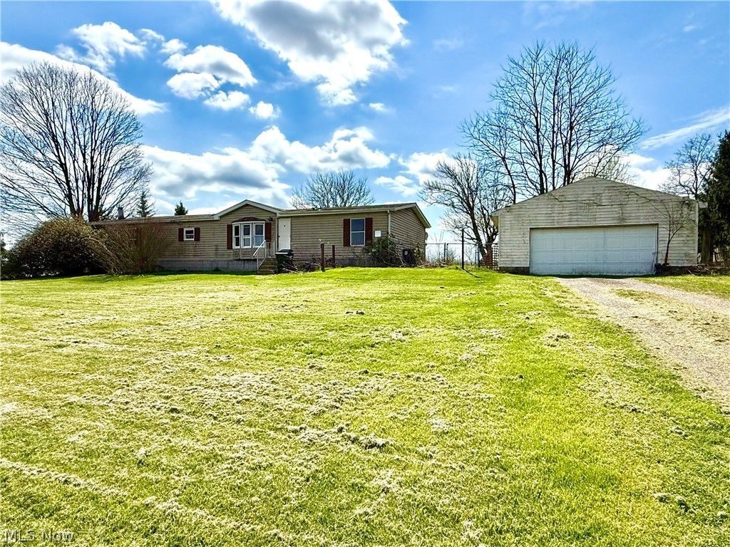 Enjoy country living on this serene .67 acre almost flat lot. The manufactured home needs TLC but features 3 BR, 2 full baths, a living/dining great room with wood stove, kitchen with loads of cabinet space and all appliances, as well as a first-floor rec room with fireplace. The back yard is fenced and there is a 2 car 24x24 detached garage. The hot water tank, furnace and A/C were installed in 2023 per the seller. This must be a cash deal only.